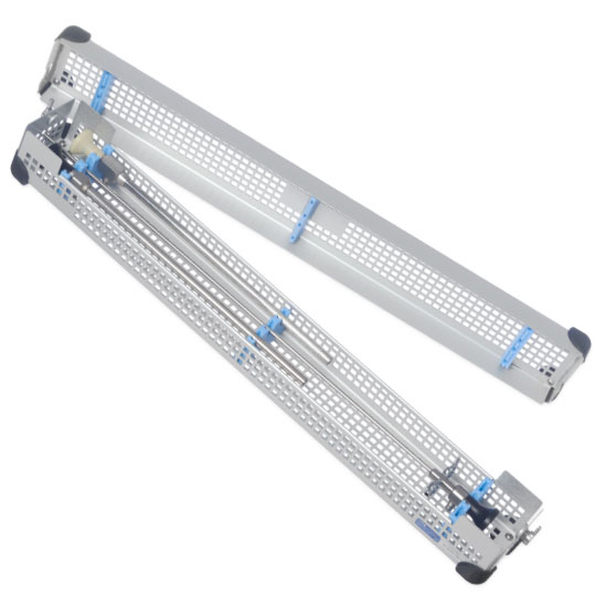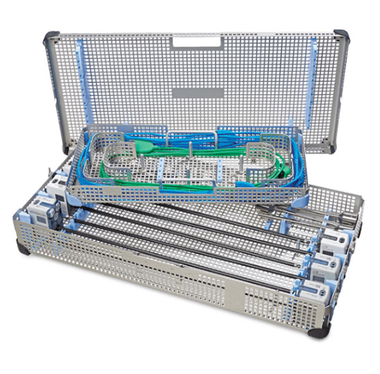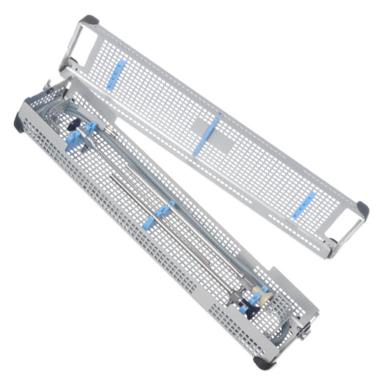 InstruSafe® Instrument Protection Trays are perforated metal trays — or cassettes — with feet, handles, latches, and most often, silicone instrument holders. Various lengths, widths and heights are available to accommodate different sizes and quantities of instruments within a particular set.